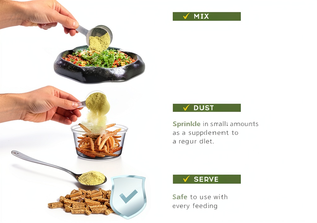 You can use it daily by sprinkling a small amount over your reptile’s regular food to ensure consistent nutrient intake.