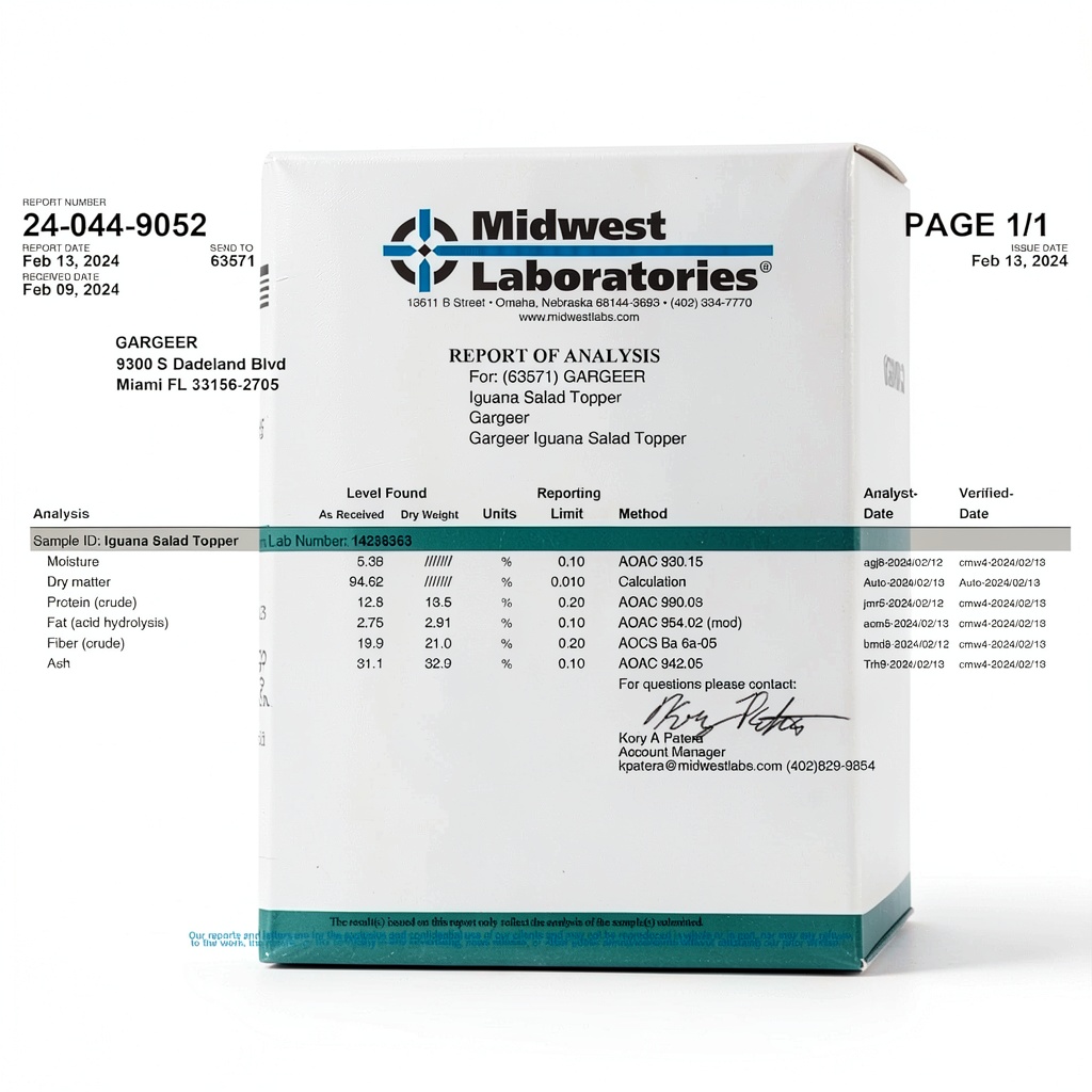 Gesy Designs stands out with over 25 years of herpetology expertise, ensuring each topper is crafted from the finest ingredients for maximum efficacy. Our products are made in the USA under high manufacturing standards, offering a trusted solution for reptile nutrition. We prioritize customer satisfaction and provide a blend that is easy to use, promoting vibrant health and well-being in pets without artificial additives.
