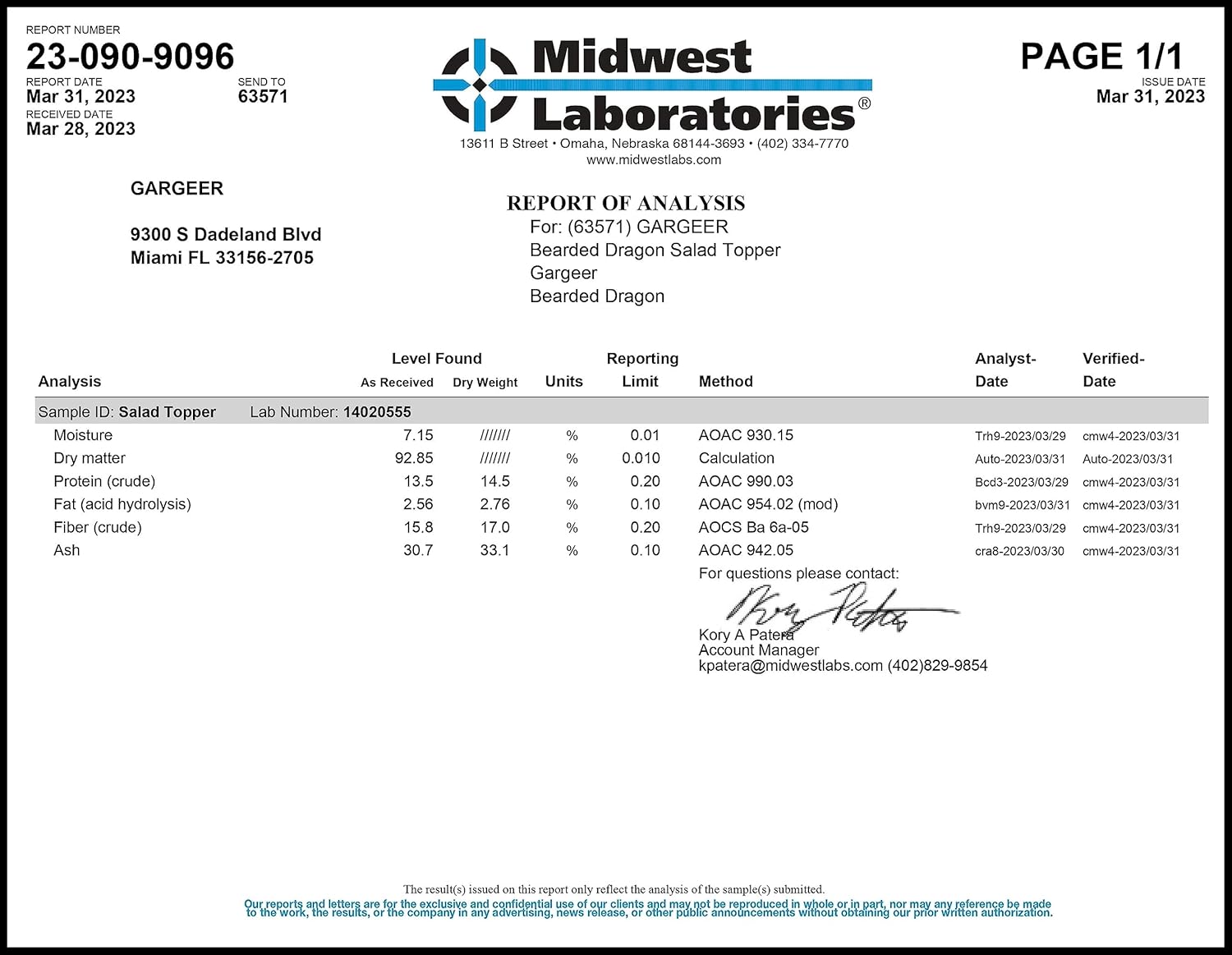 Gesy Designs Salad Topper is a premium nutritional supplement for reptiles, crafted to enhance your pet’s diet with high-quality ingredients. Each 2-ounce pack contains alfalfa leaf powder, dandelion, and calcium carbonate, delivering essential vitamins like A, D3, and E, along with amino acids and minerals. This product supports overall health, digestion, and growth, and is available in multiple varieties including Forest Tortoise, Iguana, Blue Tongue Skink, Grassland Tortoise, and Dragon toppers. Manufactured in the USA by experts with over 25 years of herpetology experience, it ensures safety and efficacy for your reptile companions.